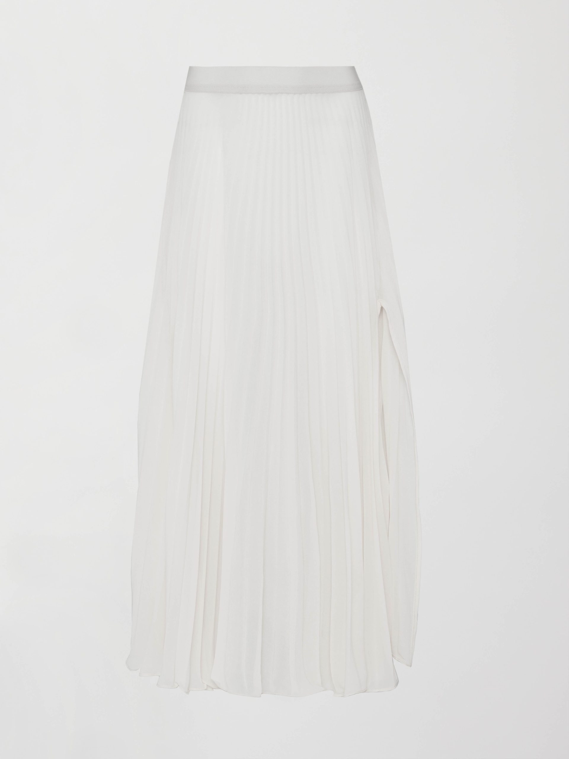 The Mesh Pleated Skirt in Ivory brings movement and elegance to everyday styling. Designed with sheer mesh pleats and an elastic waistband, this flowy skirt layers effortlessly over leggings, biker shorts, or swimwear. A thigh-high slit adds modern edge and ease of movement, making it perfect for transitioning from studio to street or casual brunch to vacation wear. Lightweight and versatile, this skirt elevates active looks while remaining easy and breathable.